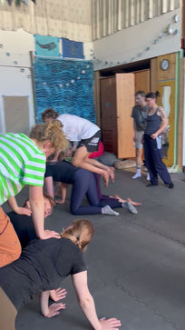 Es wird immer ein gemeinsames Aufwärmen sowie Grundlagen in Partnerakrobatik geben. Ab und zu probieren wir auch Ideen für die Bühne aus - vielleicht entsteht ja auch die Lust, selbst aufzutreten...